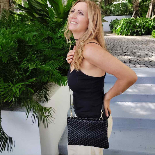 Daisy Convertible Vegan Crossbody & Clutch – Woven Recycled PU Leather