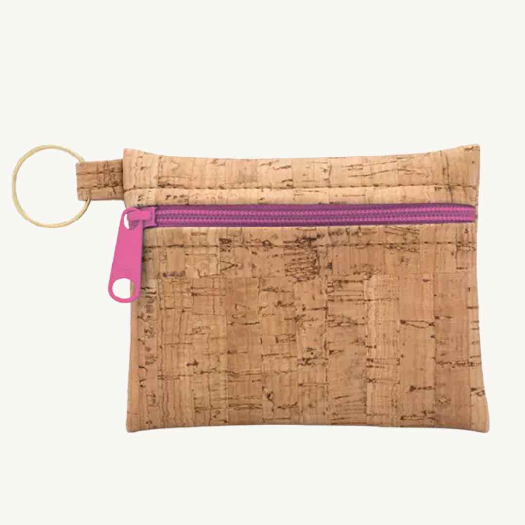 Love this cute wallet!! Love the fact that it has a key ring for keys and that pop of color from the zipper-I got aqua. The cork finish is great. But the fact that it's vegan is the best feature!!